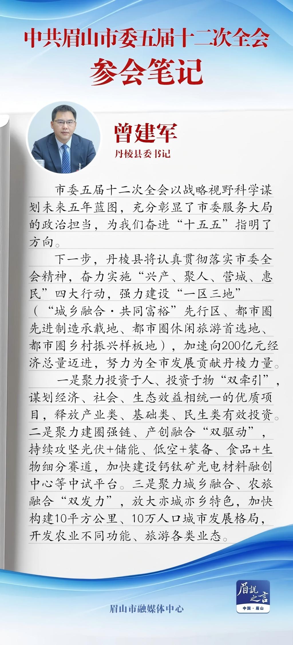 全会参会笔记|丹棱县委书记曾建军:奋力实施“四大行动” 强力建设“一区三地”