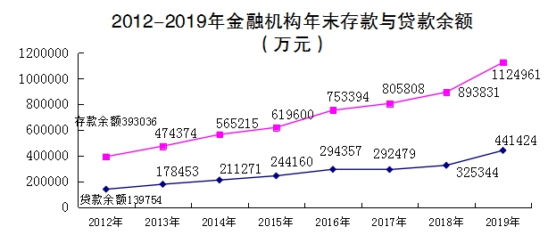 金融2019年末,金融机构人民币各项存款余额112.50亿元,比年初增加23.12亿元,增长25.9%。其中,住户存款余额86.76亿元,比年初增加12.38亿元,增长16.3%。年末金融机构各项贷款余额44.14亿元,比年初增加11.61亿元,增长35.7%。