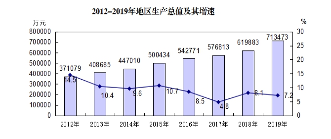 3.公报地区生产总值图示部分2012-2018年均为四经普修订前数据。