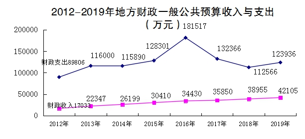财政全年实现地方一般公共预算收入4.2亿元,同口径增长10%,税收性收入2.1亿元,下降2.9%,占地方一般公共预算收入50.9%。地方一般公共预算支出12.4亿元,增长10.1%。全年完成政府性基金收入5.0亿元,增长223.7%,完成政府性基金支出7.1亿元,增长97.8%。