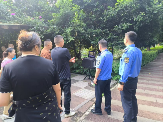 本次行动主要针对居民小区的周边公园,通过“定点+动态”相结合方式,在“午间+晚间”双时段对公园内使用高音喇叭、大功率音响等设备产生噪音的行为重点监管,发现问题及时劝阻,全力维护居民小区周边公园环境秩序。