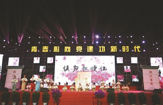 活动还进行了精彩的文艺表演。整场表演分为“追忆过去·奋力当下”、“正适青春·振兴未来”两个篇章,《追忆1919》、《精忠传奇》、《致青春》、《青春的报告》等节目表演,展现了浓浓的爱国情怀和朝气蓬勃的青春气息,深得现场观众喜爱,赢得满堂喝彩。