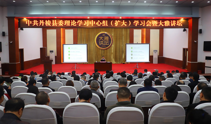 11月13日,丹棱县召开县委理论学习中心组(扩大)学习会暨大雅讲坛,会议邀请了中国生态文明研究与促进会监事长杨明森教授作《生态文明建设第一关键词,人与自然和谐共生》专题辅导。县委书记宋骥,县政协主席李学权参加会议。