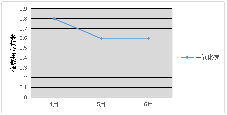 一氧化碳:最大日均浓度值为0.8毫克每立方米;季均浓度值为0.7毫克每立方米。