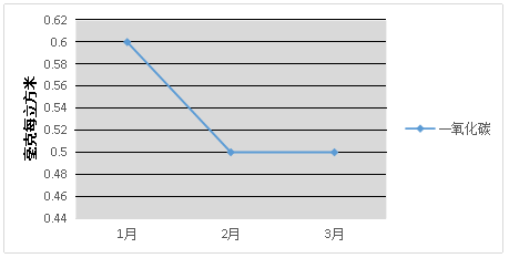 一氧化碳:最大日均浓度值为0.7毫克每立方米;季均浓度值为0.6毫克每立方米。