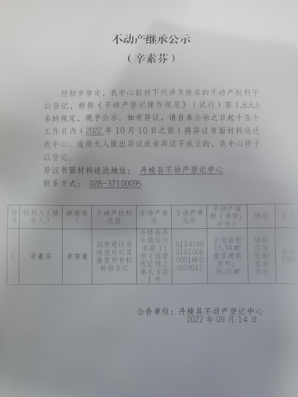 不动产继承公示(辛素芬)