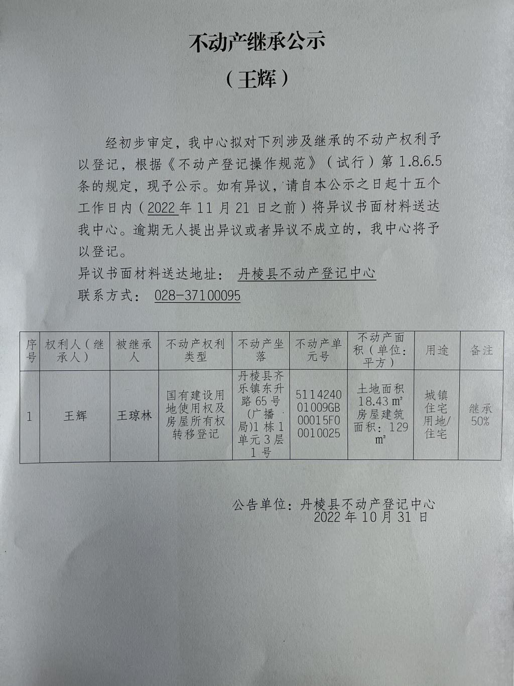 不动产继承公示(王辉)