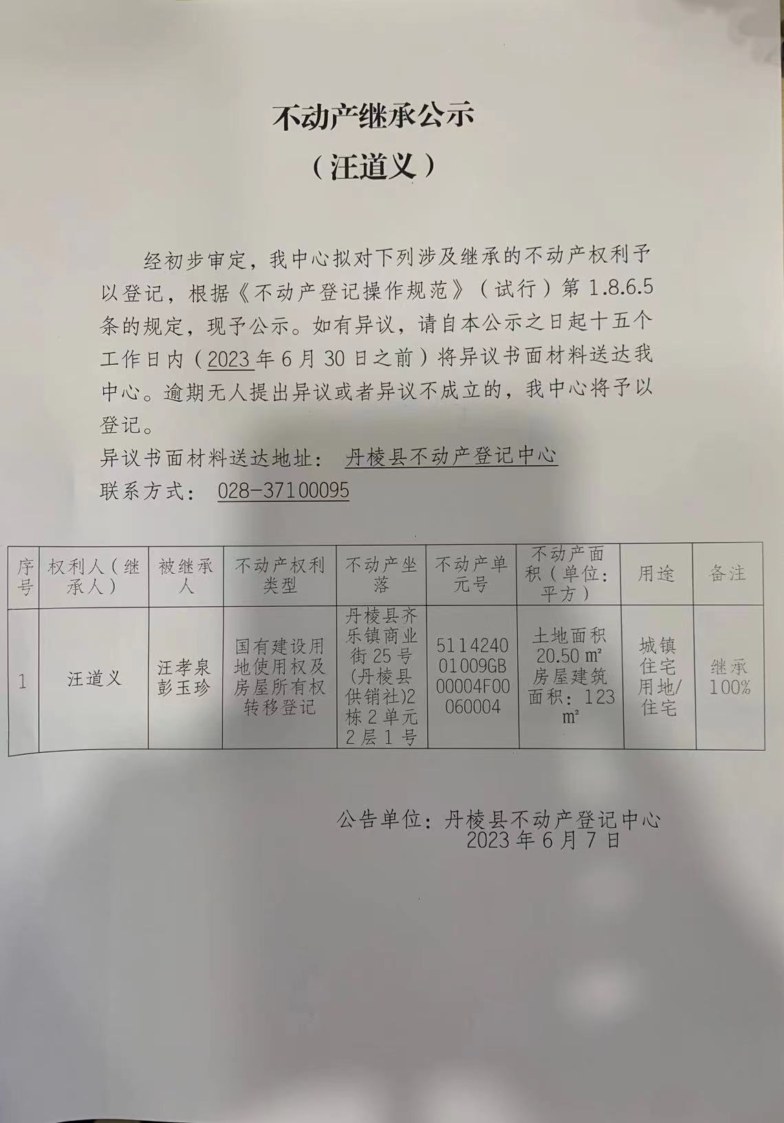 不动产继承公示(汪道义)