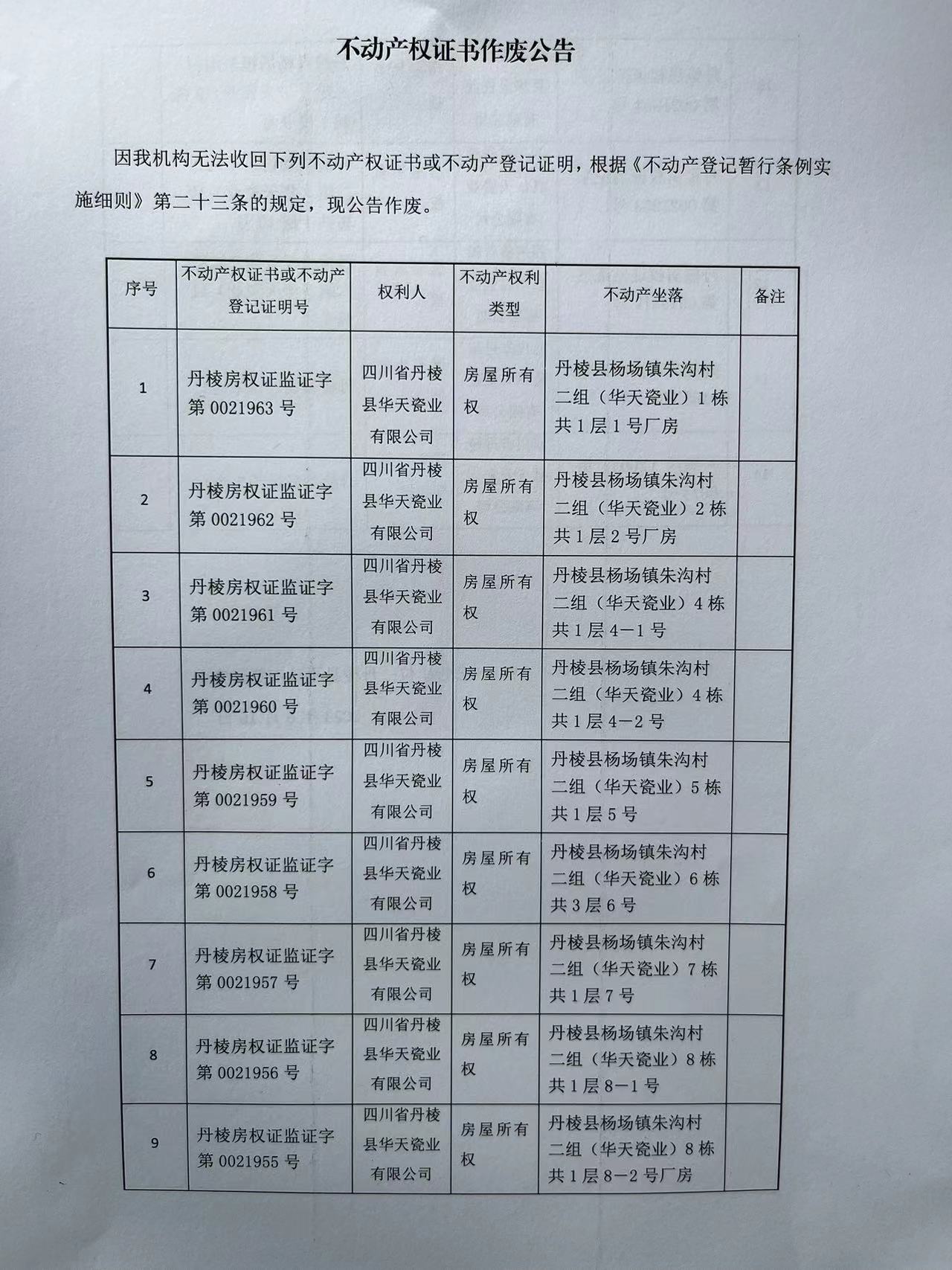 不动产权证书作废公告