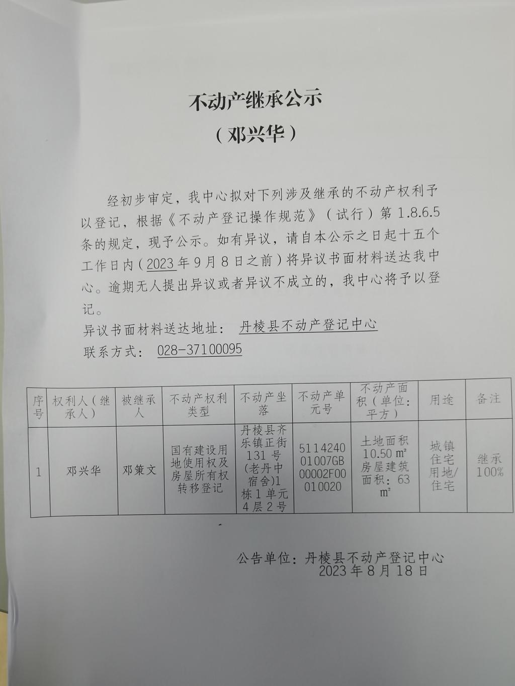 不动产继承公示(邓兴华))