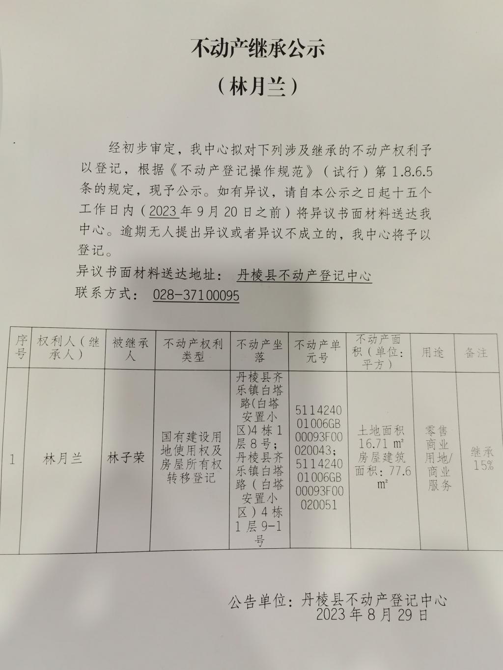 不动产继承公示(林月兰)