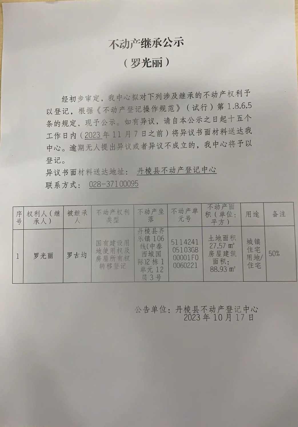 不动产继承公示(罗光丽)