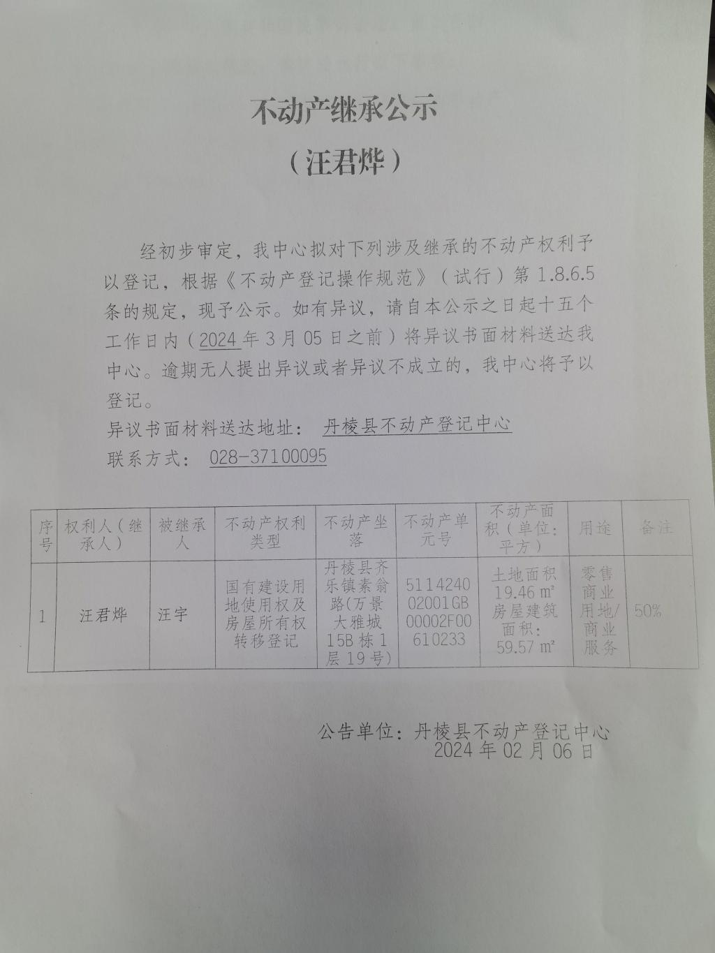 不动产继承公示(汪君烨)