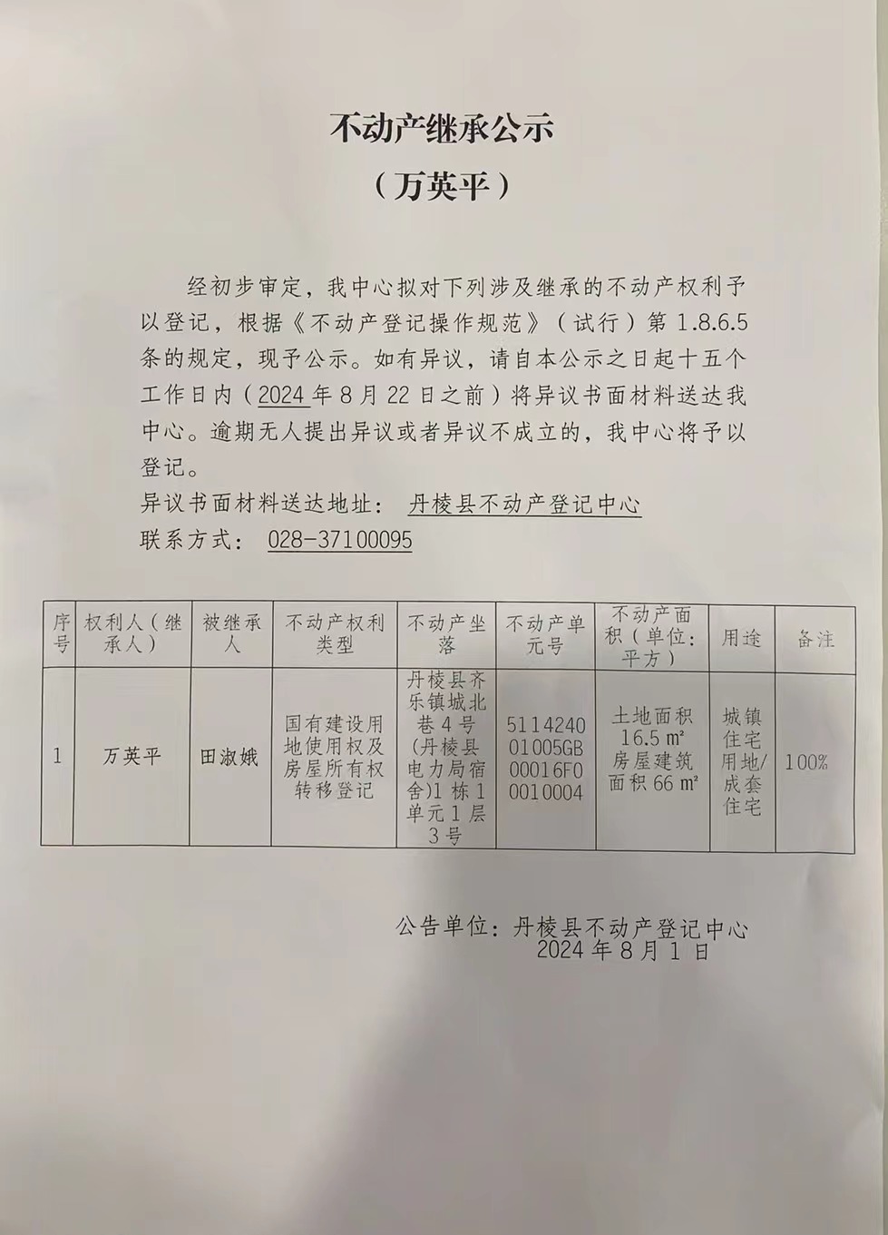 不动产继承公示(万英平)