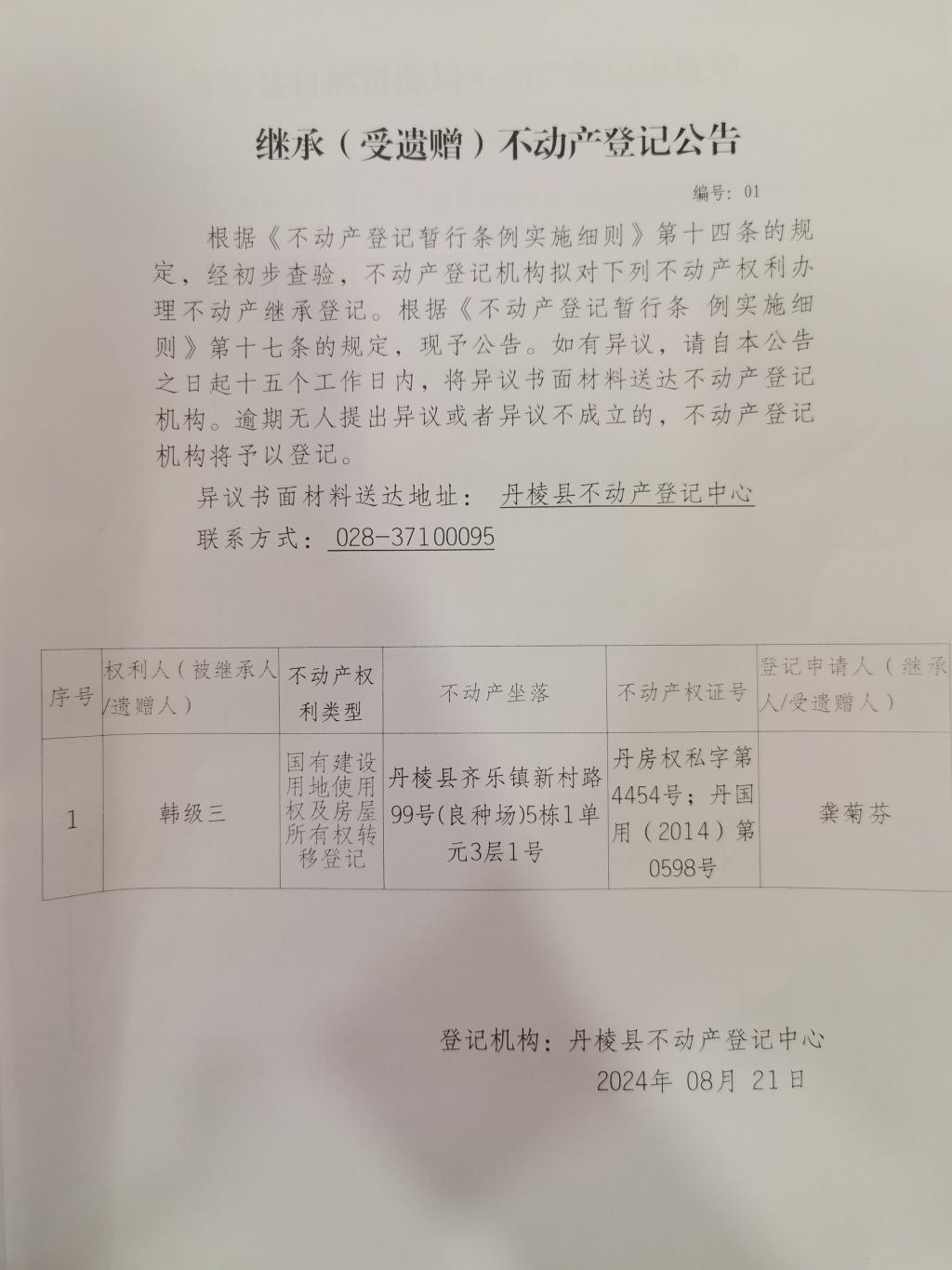 继承(受遗赠)不动产登记公告(龚菊芬)