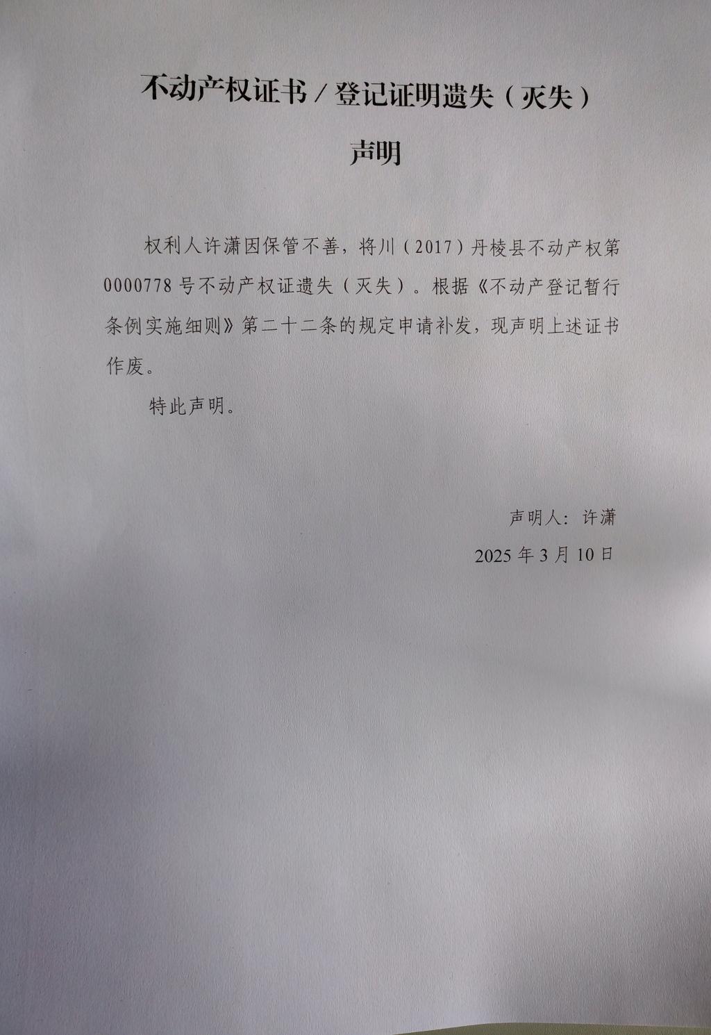 不动产权证书/登记证明遗失(灭失)声明(许潇)