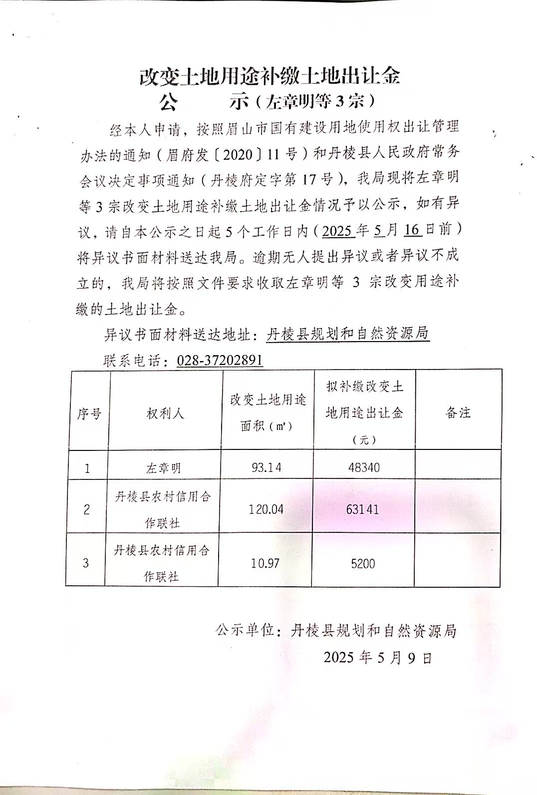 改变土地用途补缴土地出让金公示(左章明等3宗)